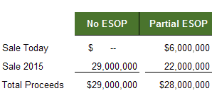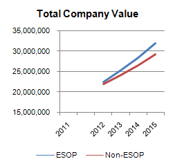 If a company is currently valued at $20 million, a business owner could diversify their personal wealth by selling 30% to an ESOP for $6 million. If that business owner expects a 10% annual value increase then the business would be worth approximately $29 million in 2015. However, if we apply the anticipated sales growth increase as determined by the Rutgers study, that same company could be worth approximately $32 million in 2015 if it were partially owned by an ESOP. That means the business owner could execute the sale today, diversify their assets and still end up financially as if they held 100% of the stock over that same period.