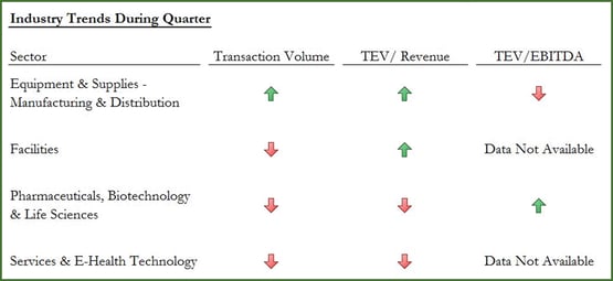 Despite the recent decline in healthcare M&A transaction volume, it is important to remember that the Affordable Care Act “ACA” is driving the industry to implement Accountable Care Organizations which are pushing the industry to lower the cost of healthcare while demanding better patient outcomes. At the same time, the ACA provides insurance for millions of previously uninsured. As this population gains coverage, the industry ownership and their investors will benefit from the growth of increased spending. This bullish outlook can be seen in the confidence in publicly traded healthcare companies. Despite recent across the board compression in the profitability or “Gross Margins” and “EBITDA Margins,” the “Total Enterprise Value” of public companies across the healthcare industry continues to increase.